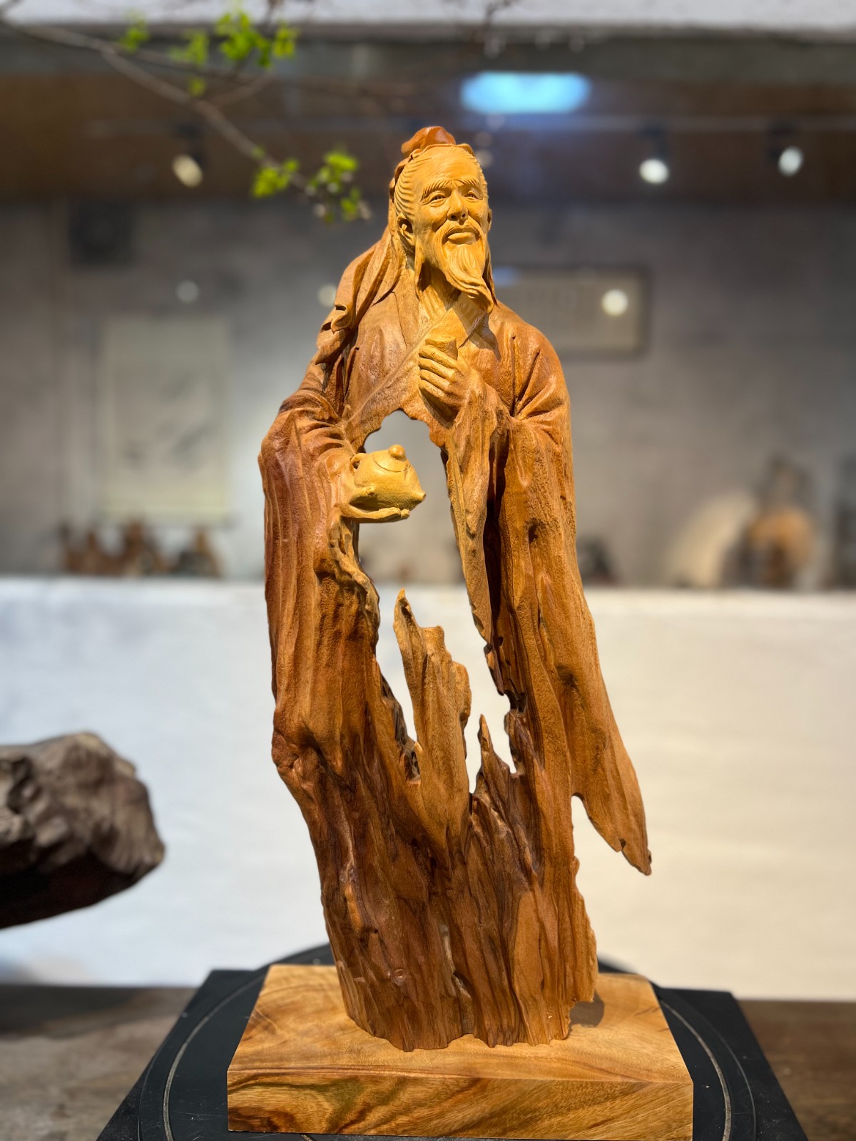 作品名稱: 茶聖陸羽 鏤空香樟根雕