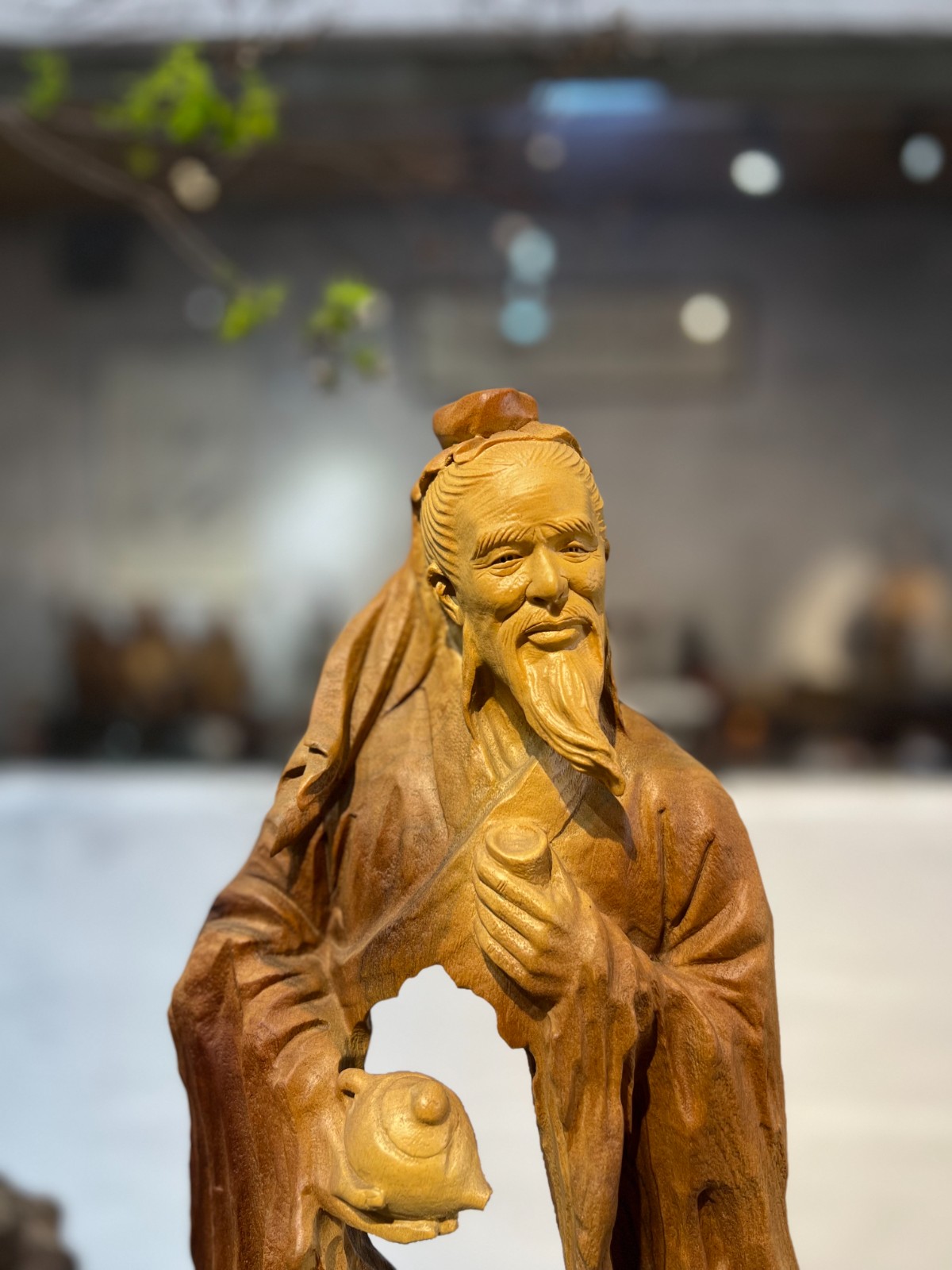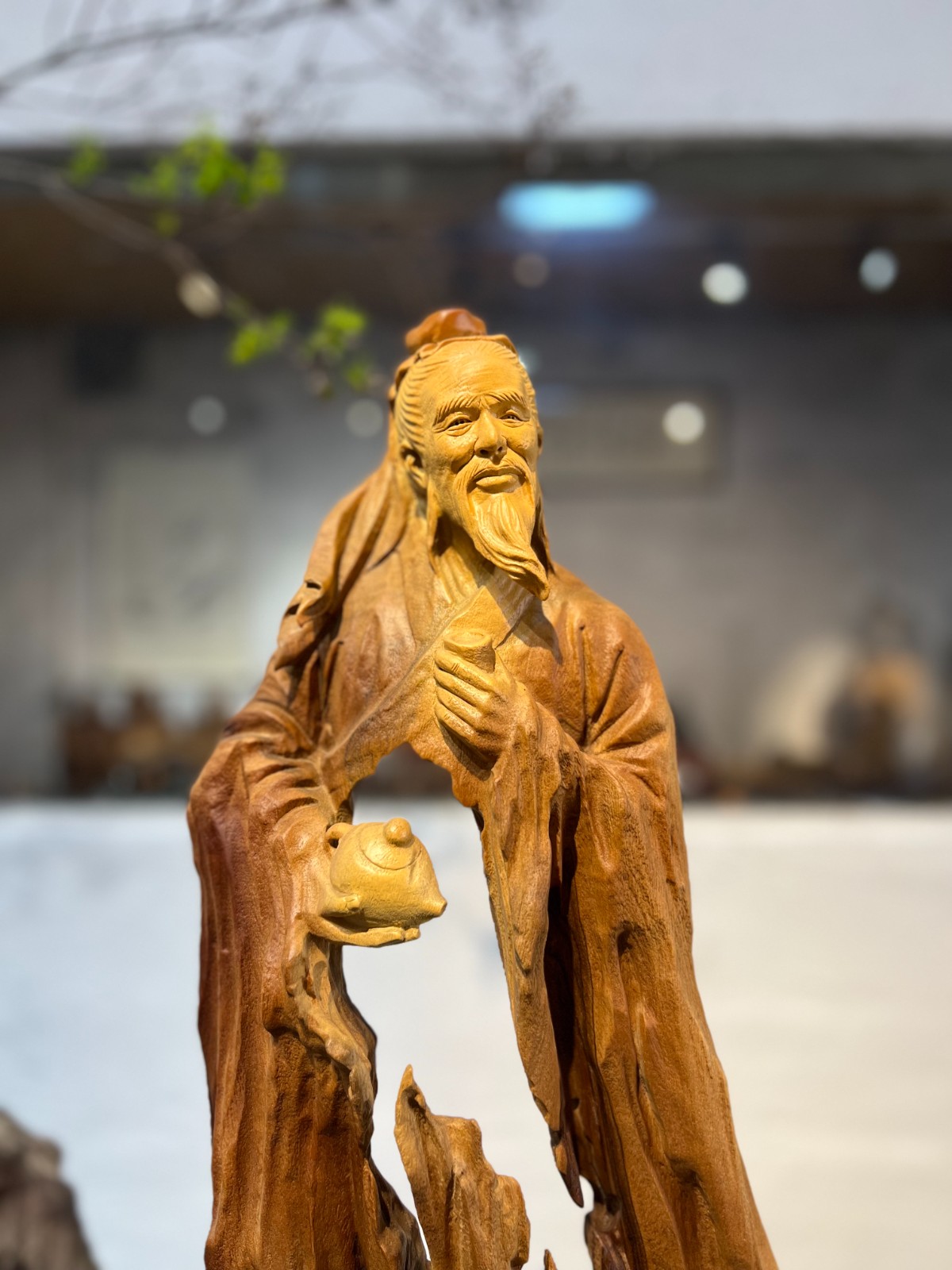 茶聖風範,神韻生動:匠人精心雕琢陸羽面部,笑容和藹可親,盡顯一代茶宗的豁達與風雅。手捧精緻小茶壺的細節更是畫龍點睛,栩栩如生。